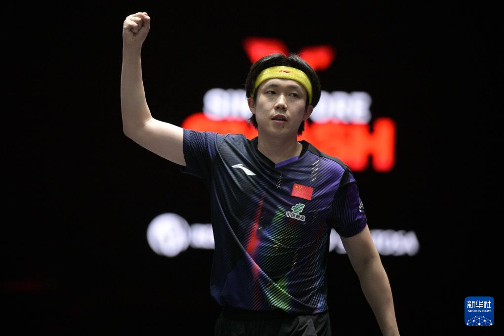 3月1日,王楚欽在奪冠后慶祝。新華社發(fā)(鄧智煒攝)